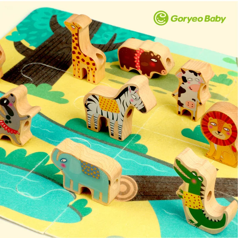 2-3-6-Year-Old Early Childhood String Building Blocks Rope Wear Beads Bead-stringing Toy Animal Thr