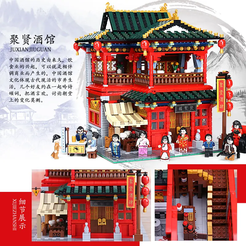 Hot Sale Creator City Street Chinese Building Tavern Toys The Silk and Satin Store Xinya Palace Martial Arts
