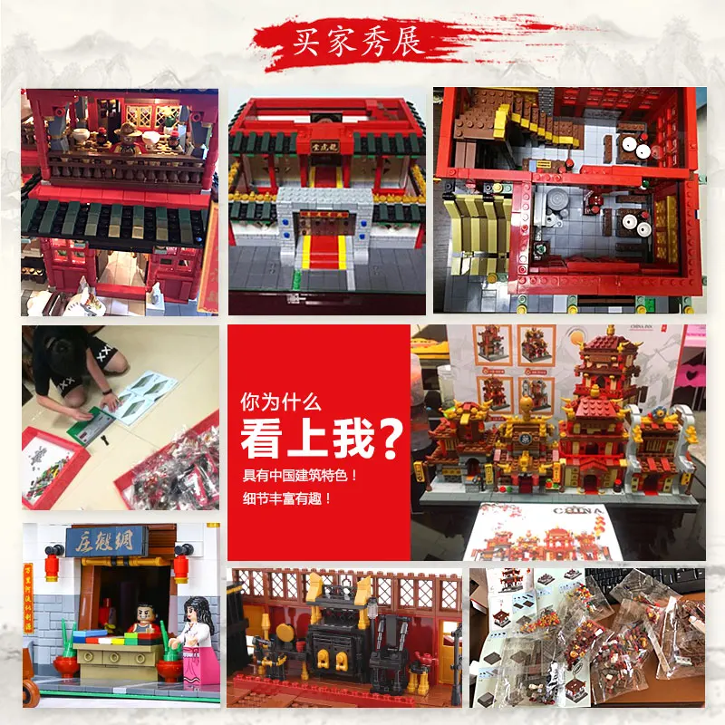 Creator City Street Chinese Building Tavern Toys The Silk and Satin Store Xinya Palace Martial Arts
