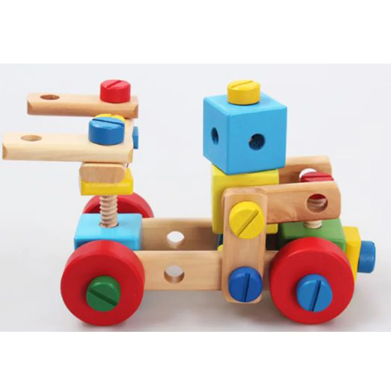 Hot Sale Montessori Baby Kids Toys Wooden Model Building Kits Nut-combination Learning Educational Preschool
